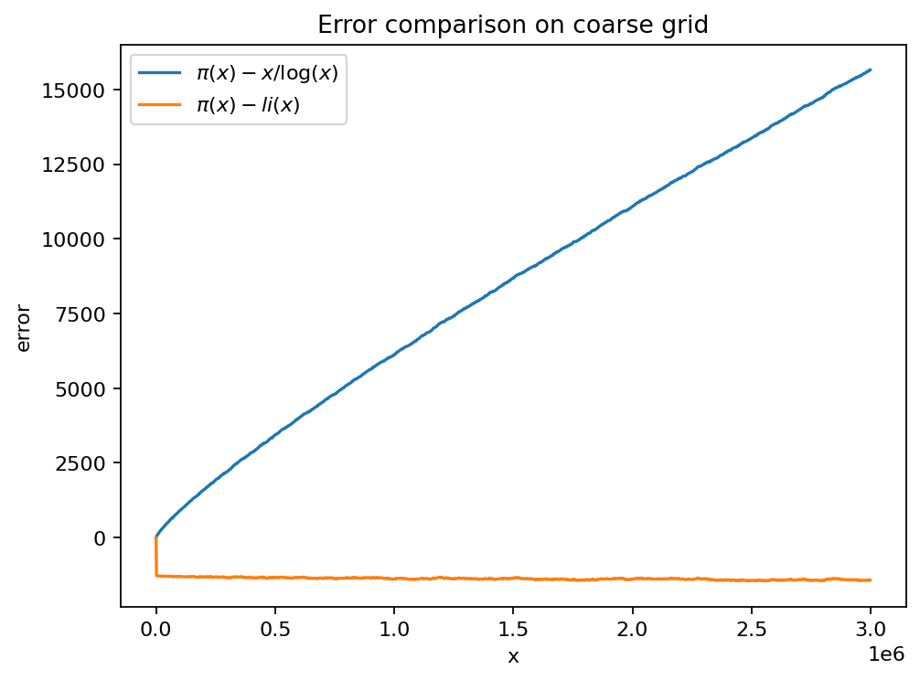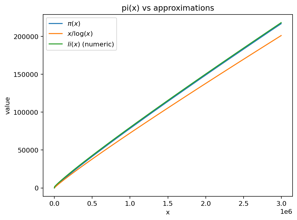 E020: Compare pi(x) to li(x) numerically¶