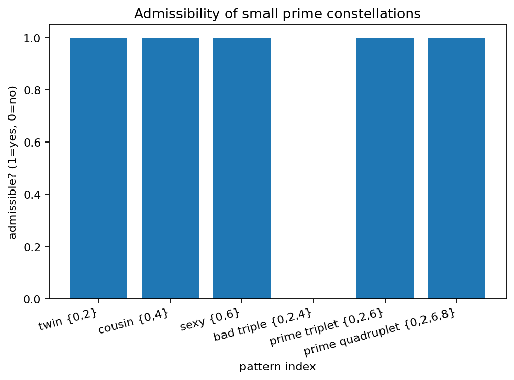 prime triplet {0,2,6}: admissible