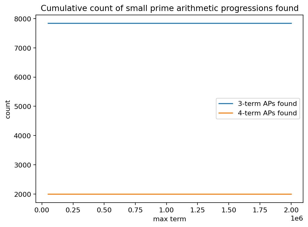 This is a finite search for short APs, not a proof of existence for arbitrary lengths.