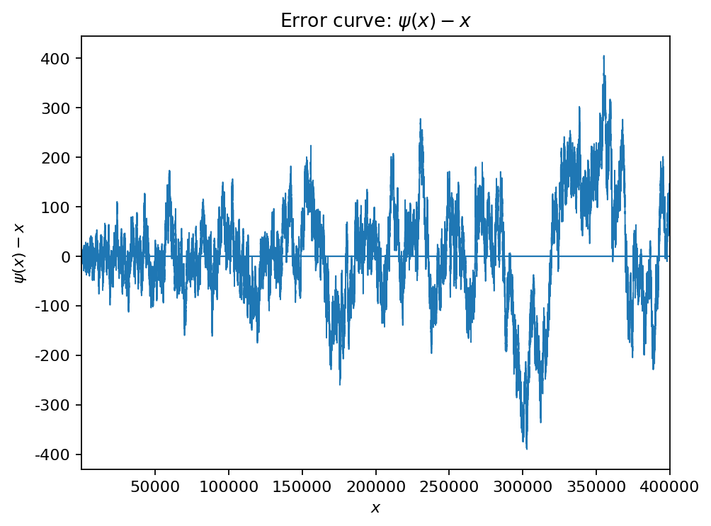 Plot ψ(x) and ψ(x)-x; optionally annotate largest jumps.
