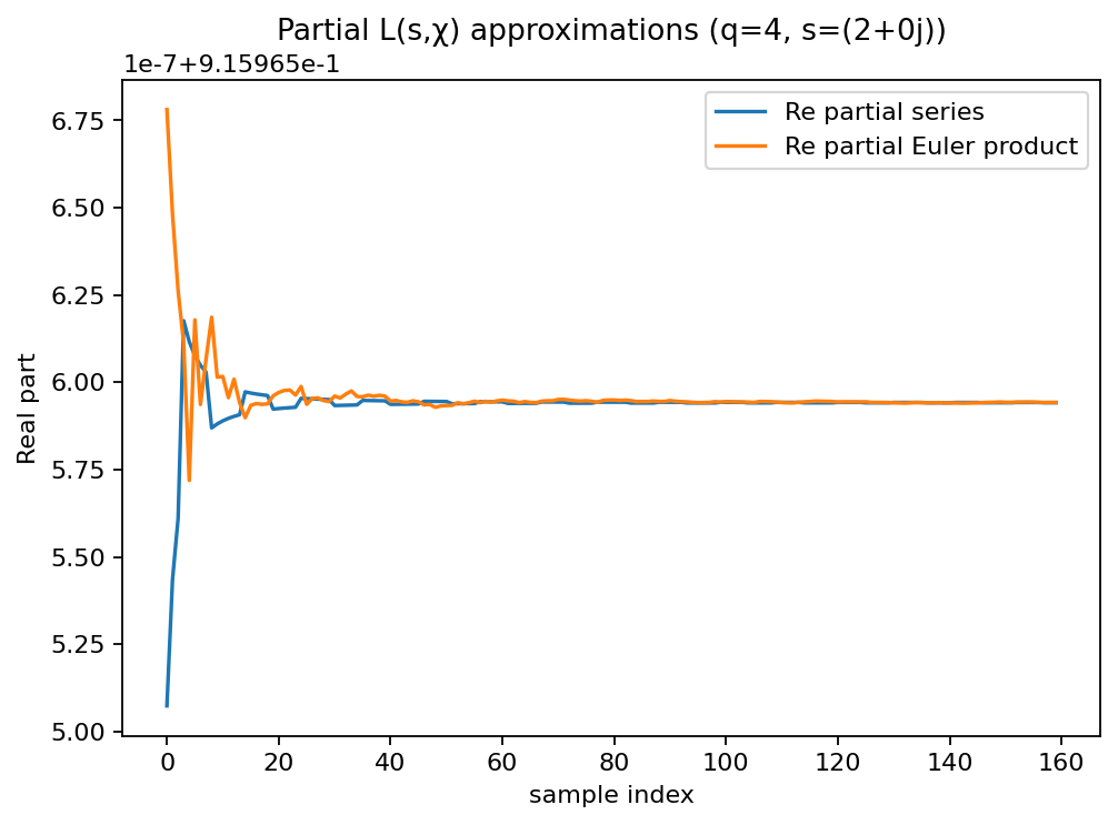 E068: Dirichlet L(s,χ): series vs. Euler product (partial approximations).¶